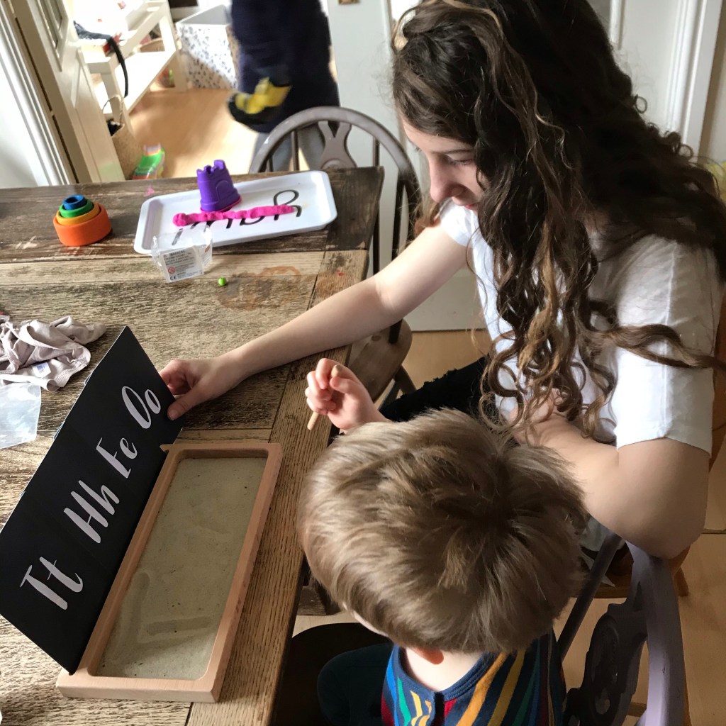It wasn’t really that organised or orderly however. They got out many games which they half played and abandoned to play on the Wii Fit. Toby wrote the title to a World War 2 project then wandered off to do something else. The little ones did enjoy the new letter tracing boards I’d ordered, so that was a success, but I fear boxing may prove to be a slightly too dangerous sport for the lounge.