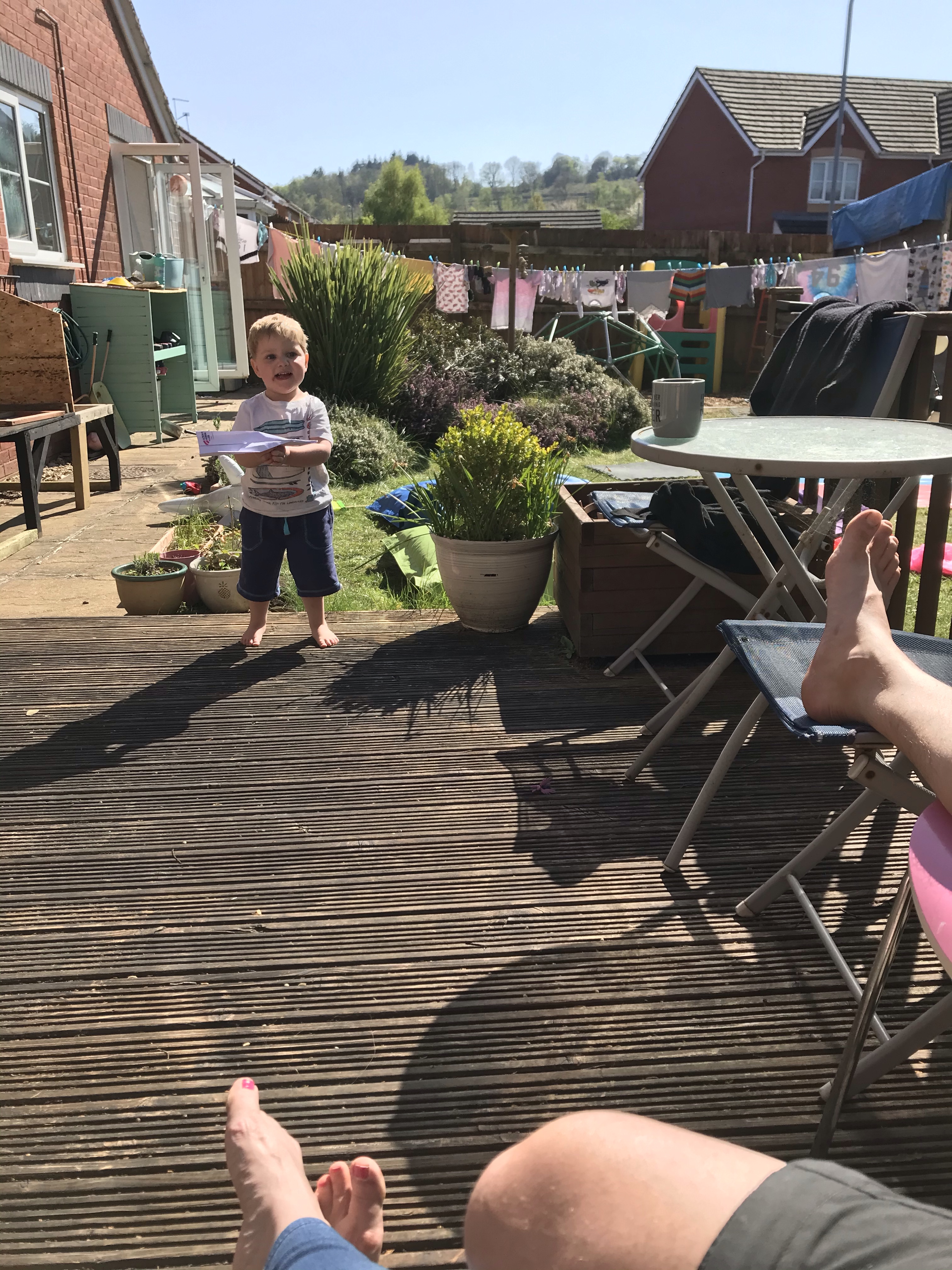 It always takes a turn for the worse in the end though. After this incident Liam picked Micah up to change him. Within seconds I spotted Micah streaking past, back into the garden, and lying stark naked in the tuff tray. I feel like I could write an epistle just on 100 reasons why not to buy a tuff tray. And why you can never take your eyes off small boys.