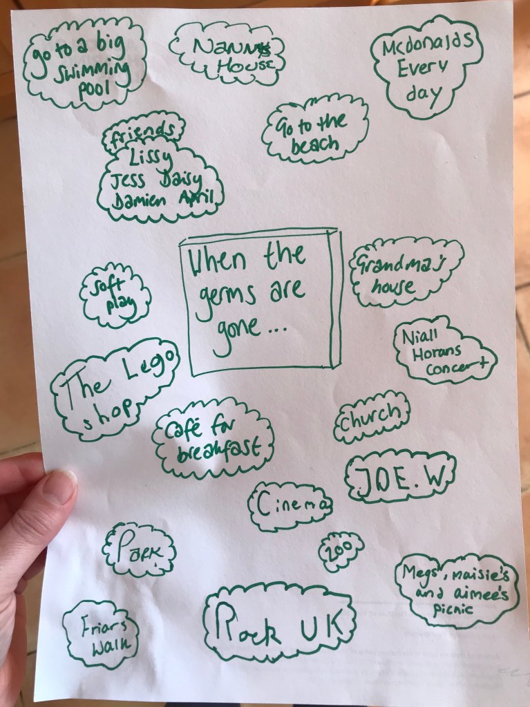 It wasn’t an emergency, and everything is fine. Just to clear that up! But I did have a hospital appointment today, and it was a weird experience. For a start I had to go to a different hospital, and I’d been given a number to ring when I arrived. The nurse met me in the eerily quiet reception and took my temperature before giving me a mask. To book in with the receptionist there were red barriers keeping a two meter distance away from the desk. Myself and the other patient waiting sat on opposite sides of the waiting room, watching a cooking programme where the chef was chatting to his co-host via video link. There are some days this whole thing definitely feels more real, and more surreal. But as you’d expect, the staff were incredible, putting people at ease despite the all the extra complications to keep themselves and others as safe as they can.