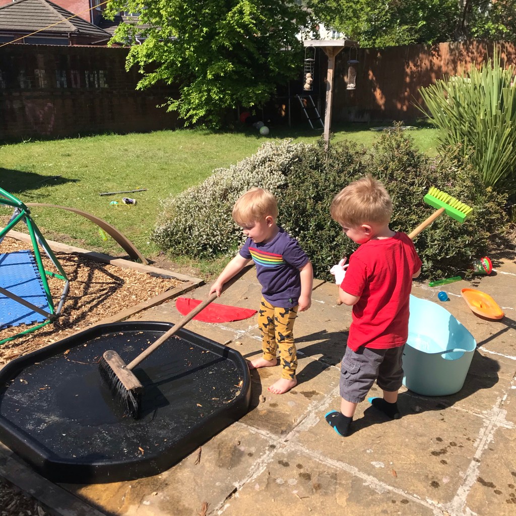 Water play always entertains them. I was especially pleased when they decided to start cleaning all of the rocks in the garden. I thought that might buy a good half an hour of peace.