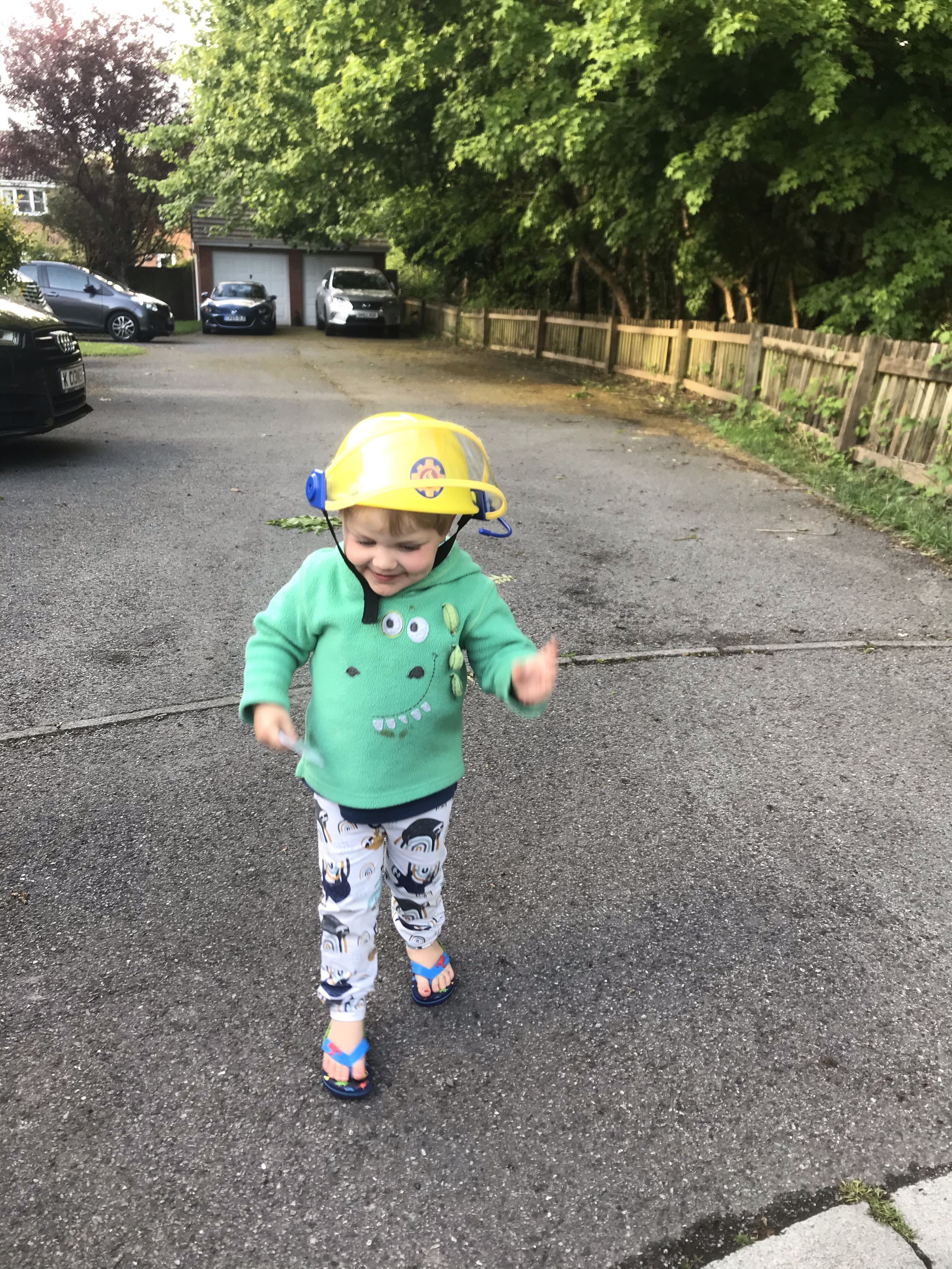 After dinner we went for our walk around the block, accompanied by a flip flop wearing, toenails painted firefighter. He walked like I do in high heels for the whole thing, leading me to vow to check his footwear next time. Mum sent some scavenger hunt cards, which proved a great asset to making the same streets much more exciting this time.
