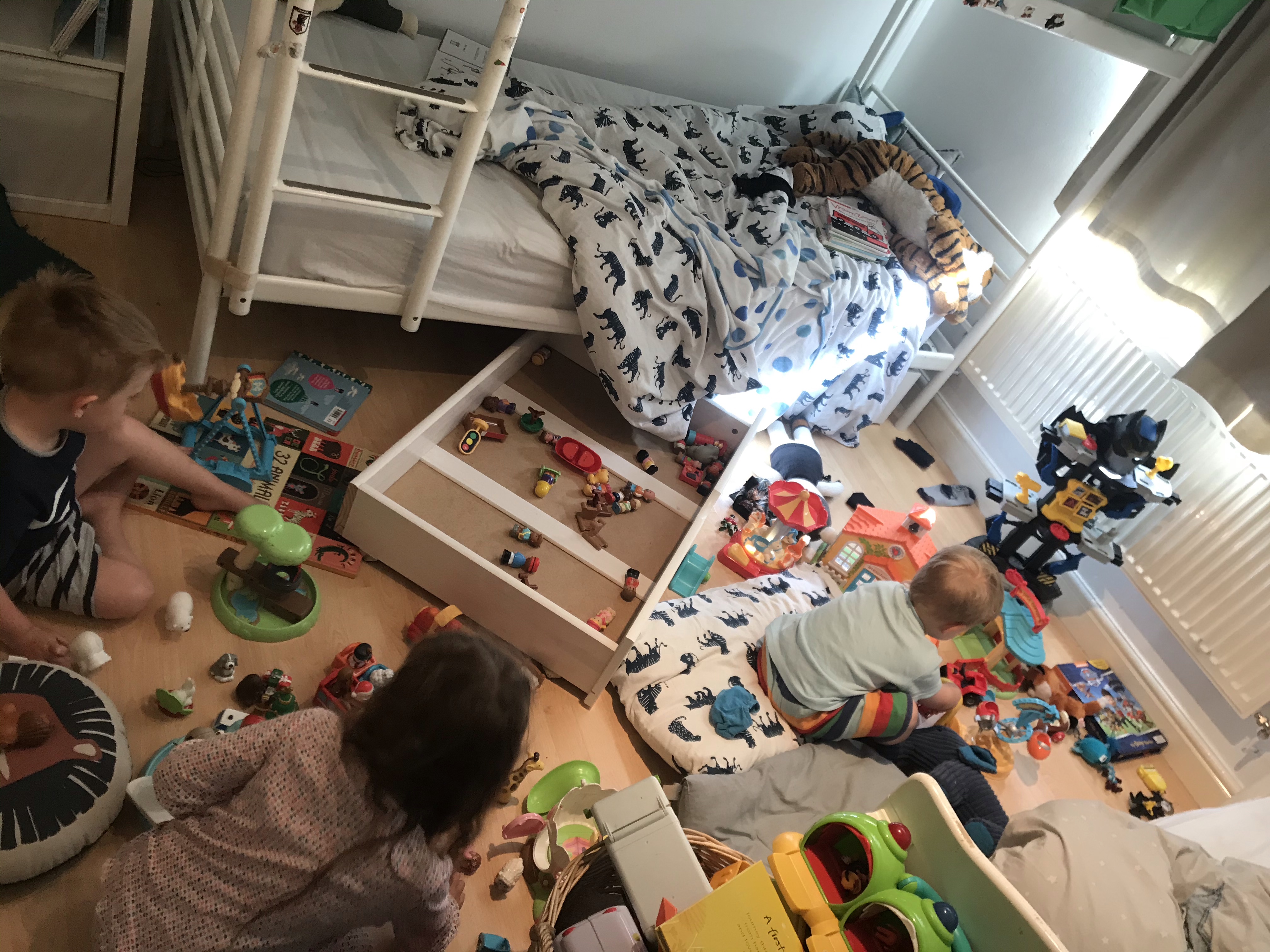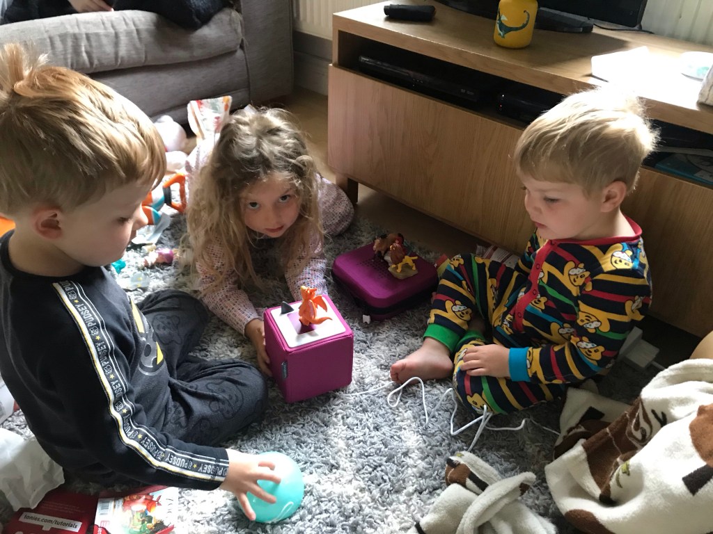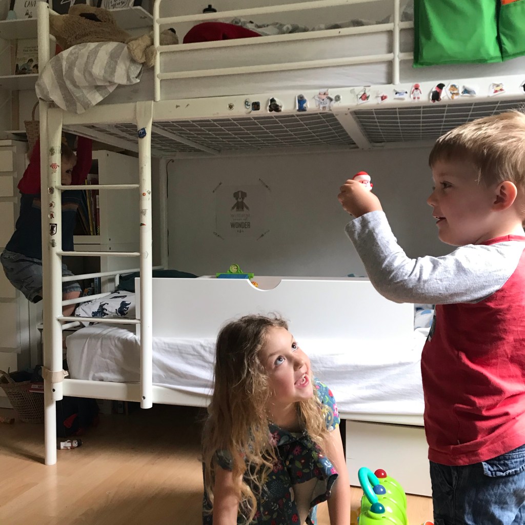 This morning I woke up and had no idea where I was. I knew I wasn’t on my side of the bed, and vaguely thought I’d swapped and was on Liam’s side. But there was a wall next to my head and a crocheted bat named Batty tickling my ear. And eventually I realised I was in Theo’s bed. Finally it all came flooding back. Maddie had wandered in relatively early in the night, but because she’s had a tricky couple of days, we let her stay in with us. At some point Micah joined us, and Liam got pushed out so I swapped to his side where Maddie was and let him have my side. And then Theo wandered in. At which point I left and took refuge from the invasion in Theo’s bed.