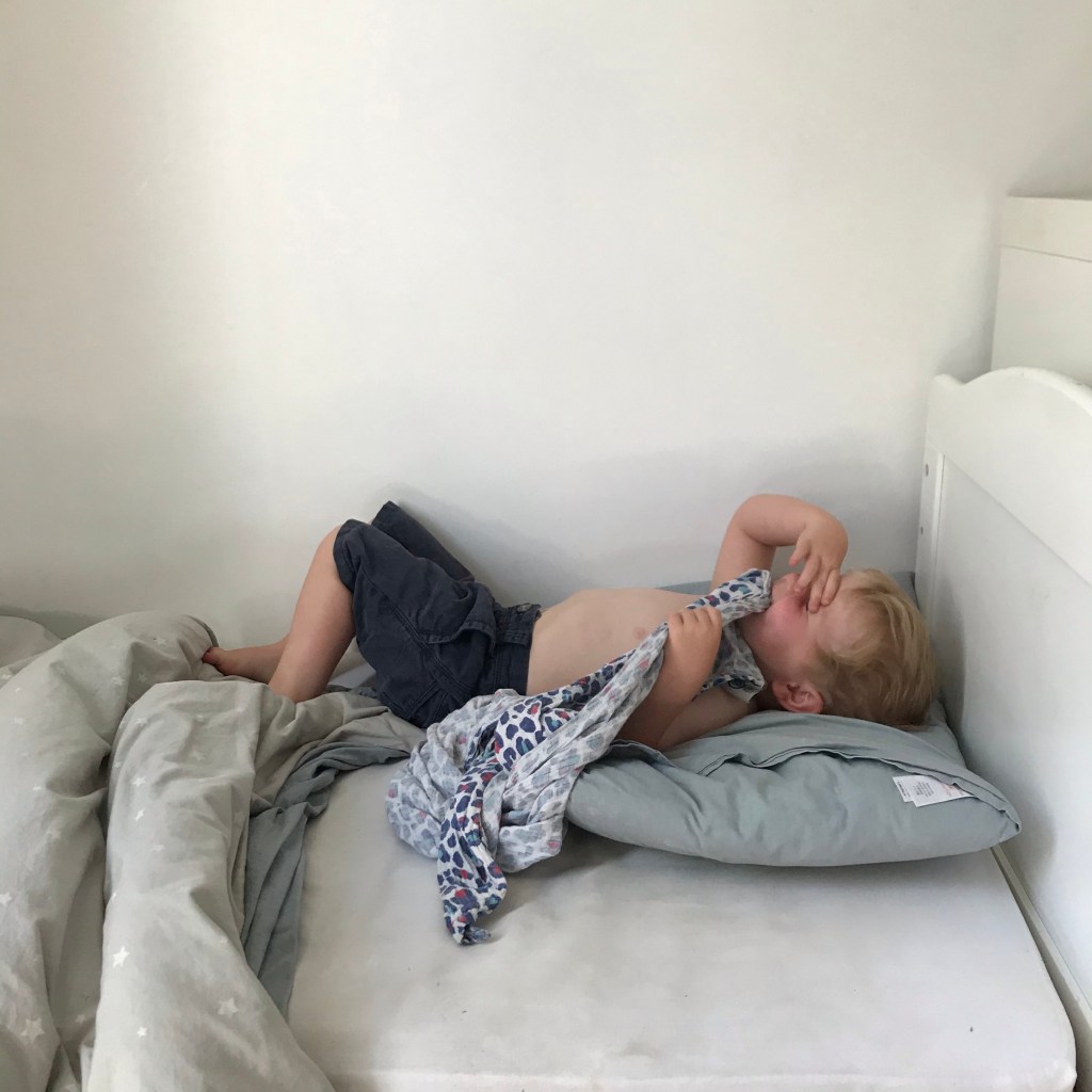 Micah has a runny nose, again, and once again I’m wondering how on earth it’s possible to catch a cold when you’ve been in isolation for 54 days. I generously offered to be the one to sit with him on the sofa after lunch, and he was asleep before the Tiger who came to tea had even had time to eat a sandwich.